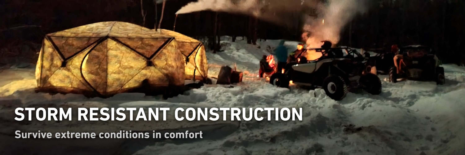 Yes, Hexagon is our biggest 4-seasons tent, which is designed for lovers of comfort. At 150.00 square feet, the tent is comparable to an apartment room, and is guaranteed to make you feel at home. A person of average height can comfortably stand upright anywhere inside the tent.