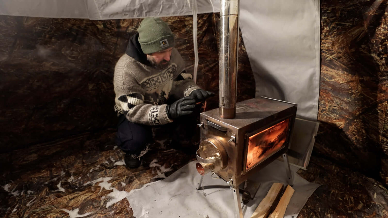 Double layer for hot and cold weather tent with an index of "UP" are set for a few minutes. Wind and rainproof: several features make this outdoor dome tent weatherproof. The exterior awning is made of waterproof, high-tech oxford fabric, while the external seams are pasted with sealing tape, and there’s a protective skirt around the outside bottom of the tent. On the doors and Windows have mosquito nets, which can detach and clean up after the summer season. Additional options and sold separately: stove "Caminus " for heating winter camping tents and cooking also 3-layer floor was specially designed for extremely low temperatures. It prevents snow melting beneath the tent from the stove and keeps the tent interior warm. The main feature of the "Caminus" stove is that the side walls are made from heat-resistant ceramic glass. The burning wood provides a pleasant, soft golden light. If you enjoy spending evenings sitting by a crackling fireplace in your home, you’ll love the cozy warmth and cheerful glow of the “Caminus” stove.