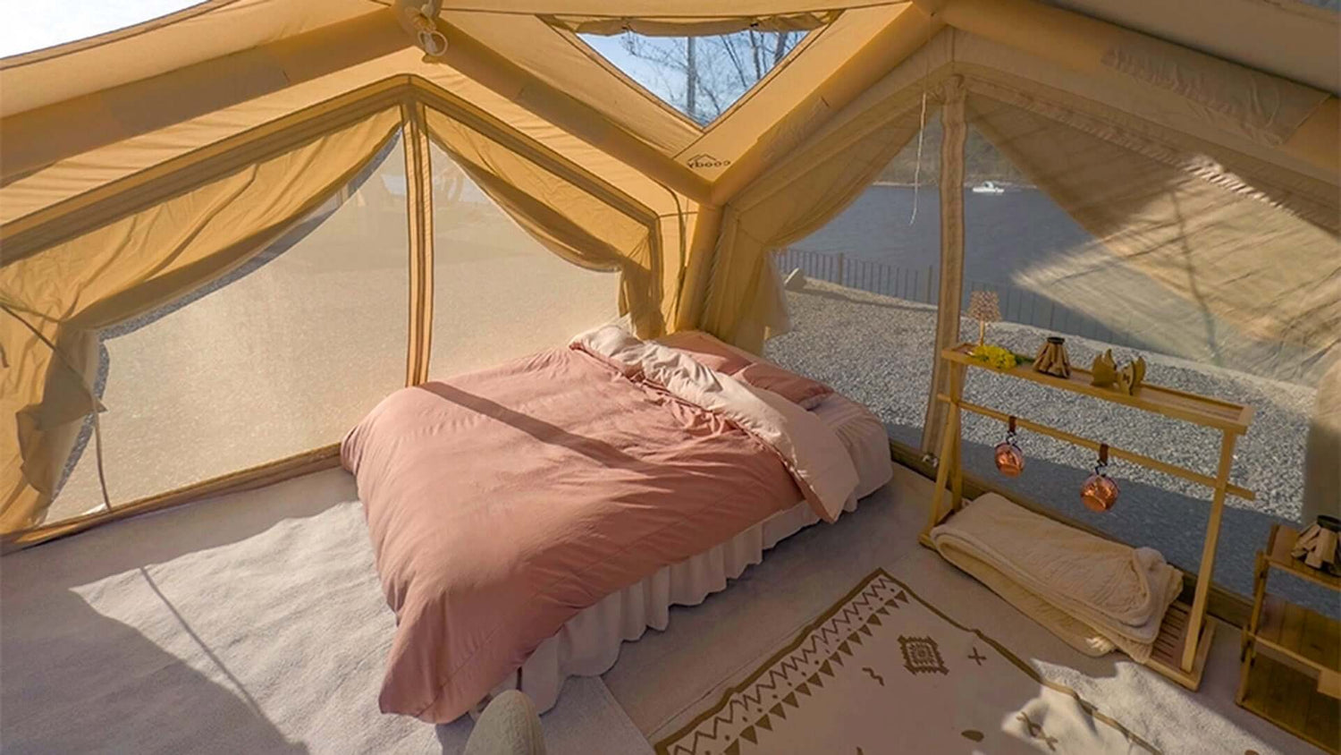 ✔ 1 cama inflable extragrande para una experiencia de glamping de lujo.