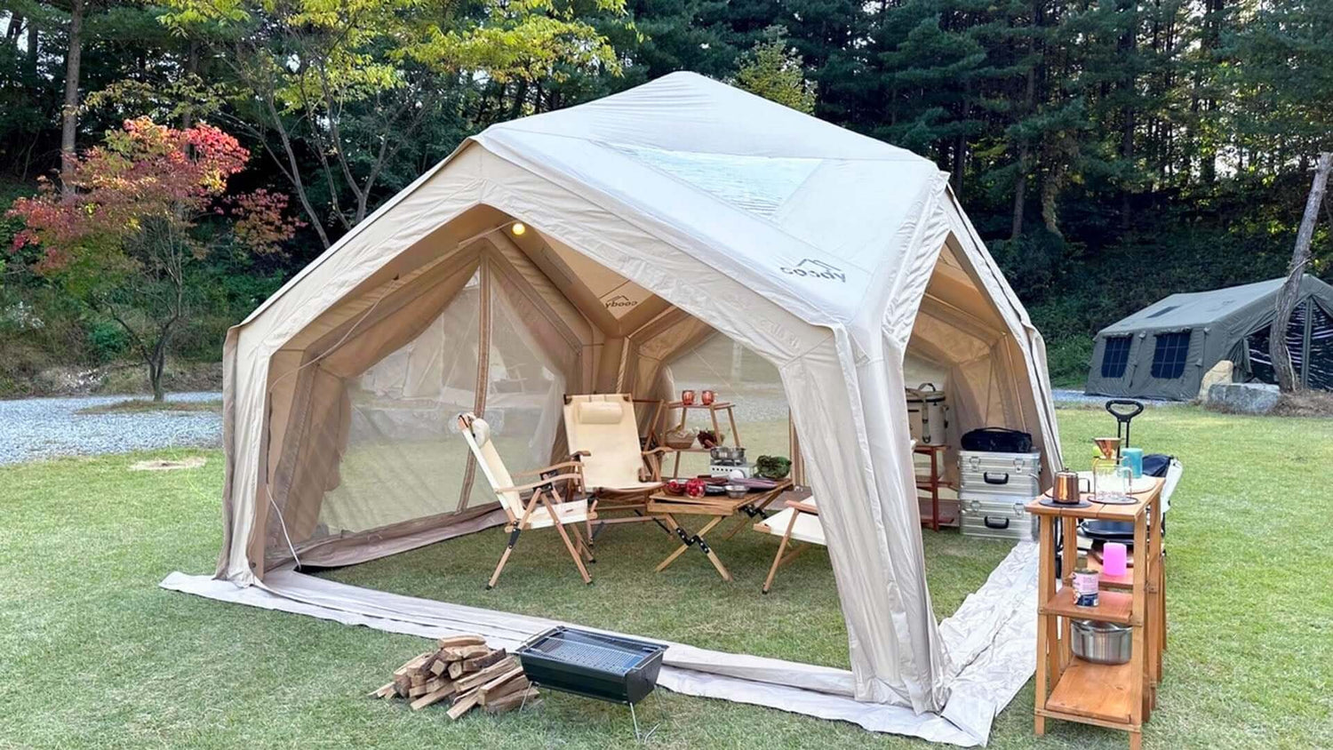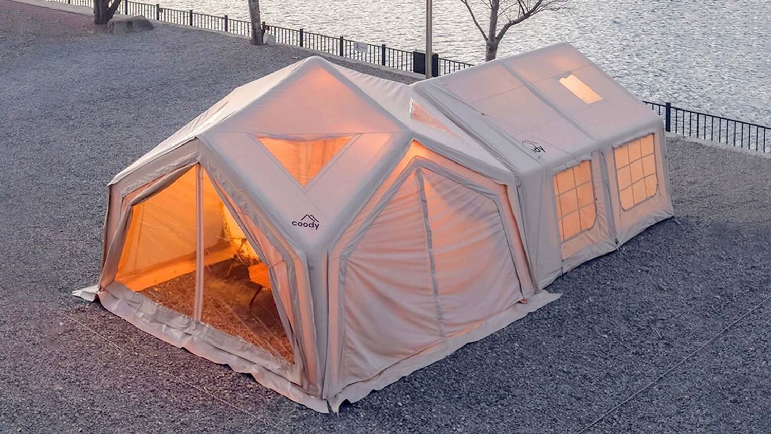 La tienda de campaña Coody Hub Air es un refugio inflable premium diseñado como espacio central para acampar en grupo y en instalaciones modulares al aire libre. Con espacio suficiente para hasta seis personas, funciona perfectamente como salón compartido, comedor o campamento base, conectando varias tiendas en un solo lugar.