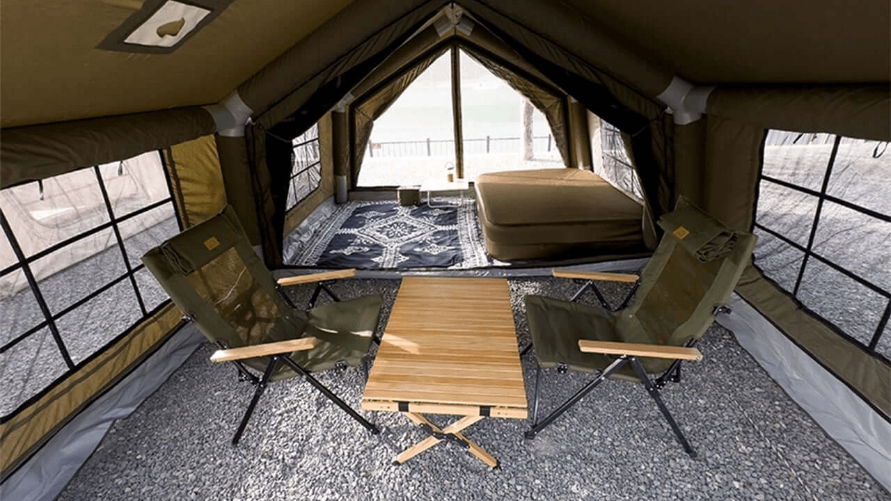 Sin postes ni piezas complicadas: solo conecta la bomba y la tienda se infla. Fácil de montar.