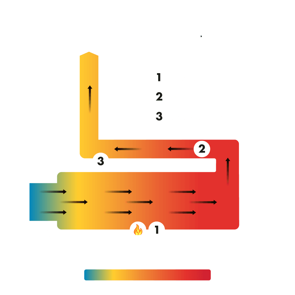 Por supuesto, Caminus M es una estufa muy eficiente. Su vidrio cerámico resistente al calor ofrece una emisión de calor superior a la del acero convencional y su temperatura de funcionamiento alcanza los 590 °C.
