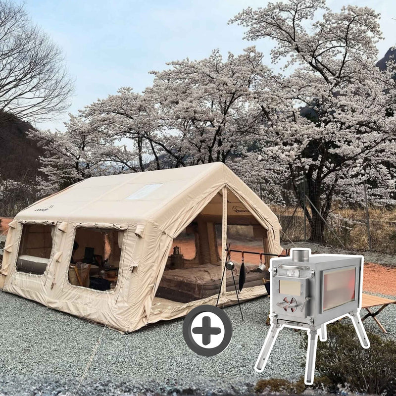 Sa structure gonflable à poutres d'air permet un montage rapide et facile grâce à la pompe fournie ; aucun arceau n'est nécessaire. Conçue pour une utilisation en toutes saisons au-dessus de 0 °C, la tente est équipée d'une sortie de poêle intégrée pour une utilisation en toute sécurité d'un poêle à bois lors des nuits plus fraîches.