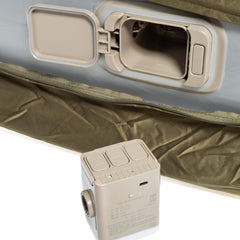 A built-in electric pump allows automatic inflation and deflation with one-button control. The system quickly inflates the mattress and fully removes air when deflating, eliminating the need for manual effort. Once packed, it folds compactly and fits into the included carry bag.