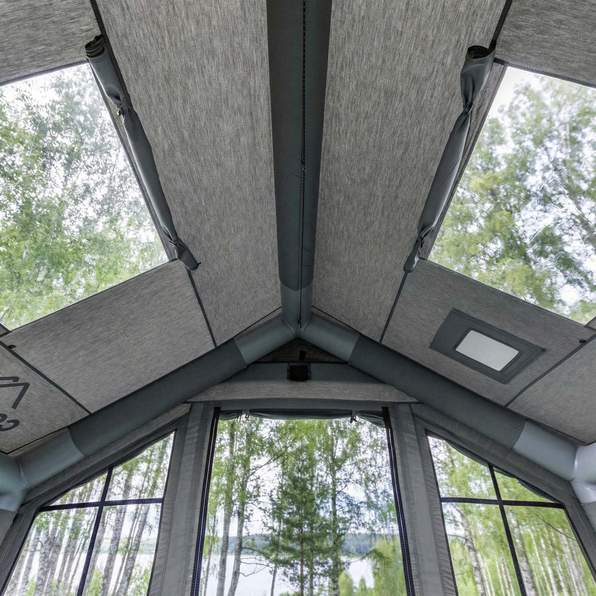 Unroll the tent and inflate with the hand pump—no poles, no hassle. Rugged air beams create a sturdy frame that resists wind and rain.