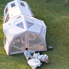 Seamlessly connect your Coody tents into one unified, weather-protected setup with expanded living space.